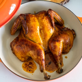 4. Remove chicken from pouch and lay skin side up on a cast iron or roasting pan. Pour all juices from pouch over chicken.